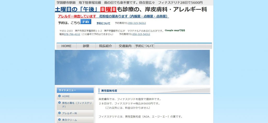AGA治療も行っており、プロペシア内服薬やミノキシジル外用薬を処方してくれます。