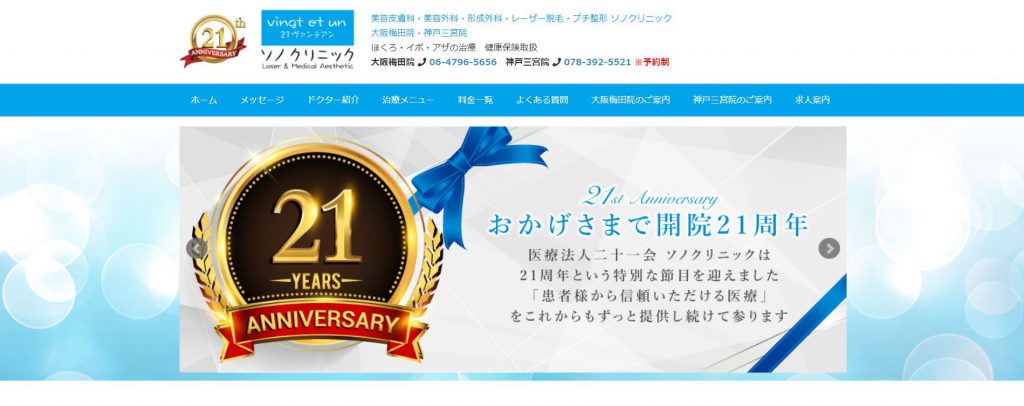 ソノクリニックは開院して21年周年と実績が豊富な美容皮膚科です。