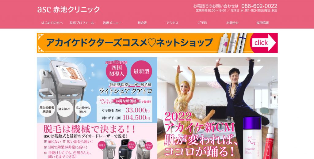 赤池クリニックは徳島で有名な美容外科で、イオンモール内にも店舗があります。