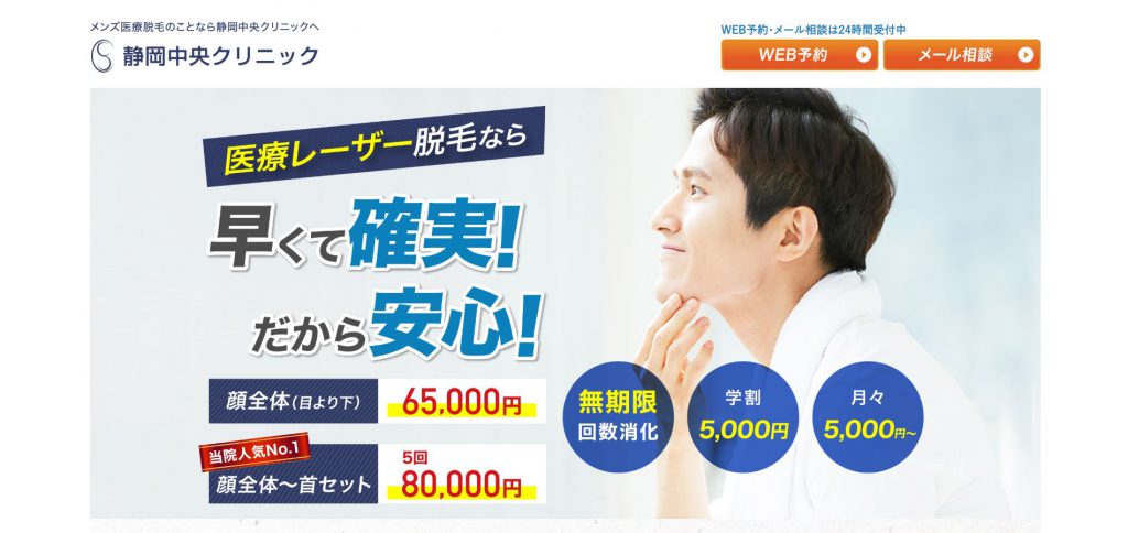 | 中央 | レーザ | 5回 6万5千円 | 記載なし | 記載なし | 静岡駅 |